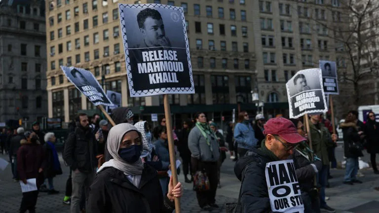 Days after he was arrested by federal officials at his Columbia University residence in an attempt by the Trump administration to deport him. The Palestinian activist Mahmoud Khalil will remain in an ICE detention facility in Louisiana for now following a procedural hearing in New York,